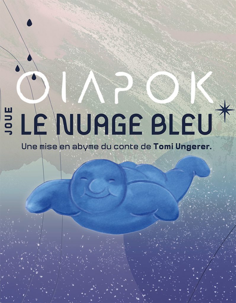Le petit Nuage Bleu est un nuage différent des autres. Libre et indépendant, il refuse de pleuvoir. Tout ce sur quoi il passe devient bleu. L’œuvre de Tomi Ungerer résonne comme une ode à la tolérance au cœur d’une grande odyssée musicale interprétée par le groupe Oiapok. De la traversée du désert à la contemplation des nuages, le groupe Oiapok explore tous les registres musicaux. Influencée par la musique répétitive de Steve Reich et les rêveries éveillées de Joe Hisaishi (compositeur des films de Myazaki), la musique d’Oiapok se veut malicieuse et inventive. Sur scène, des instruments atypiques et les images animées de la créatrice Nina Hernandez éveillent la curiosité des petits.
